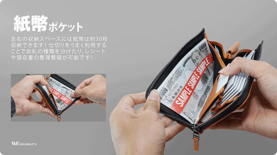 カードがたくさん入って、かつ見やすく取出しやすい。そんな長財布をお探しの方はLong WalletⅡがオススメです!