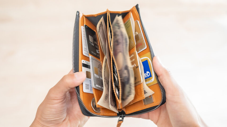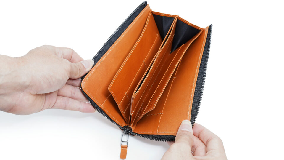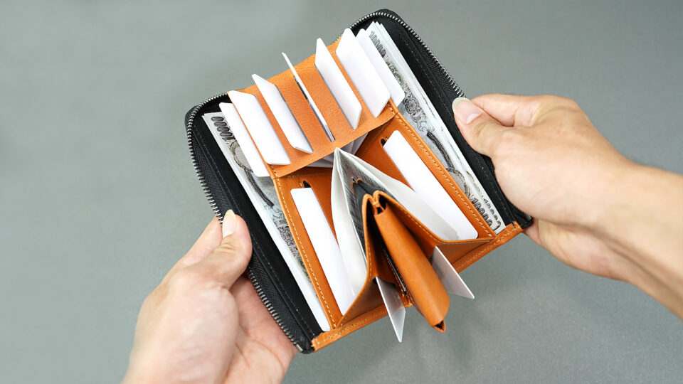 大容量でありながら、中身をいれても厚みを感じさせない長財布。