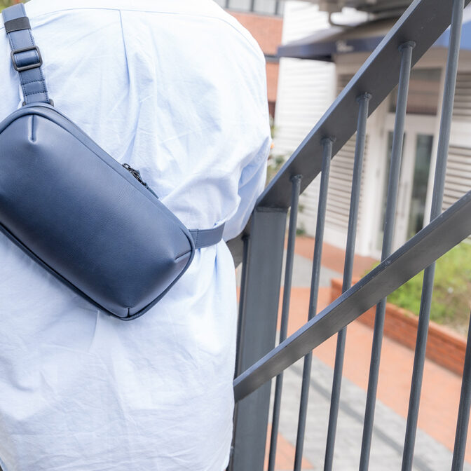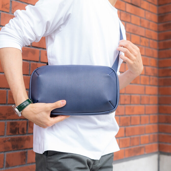 両手が自由に使えて、さっと小物を収納できる便利なボディバッグ。