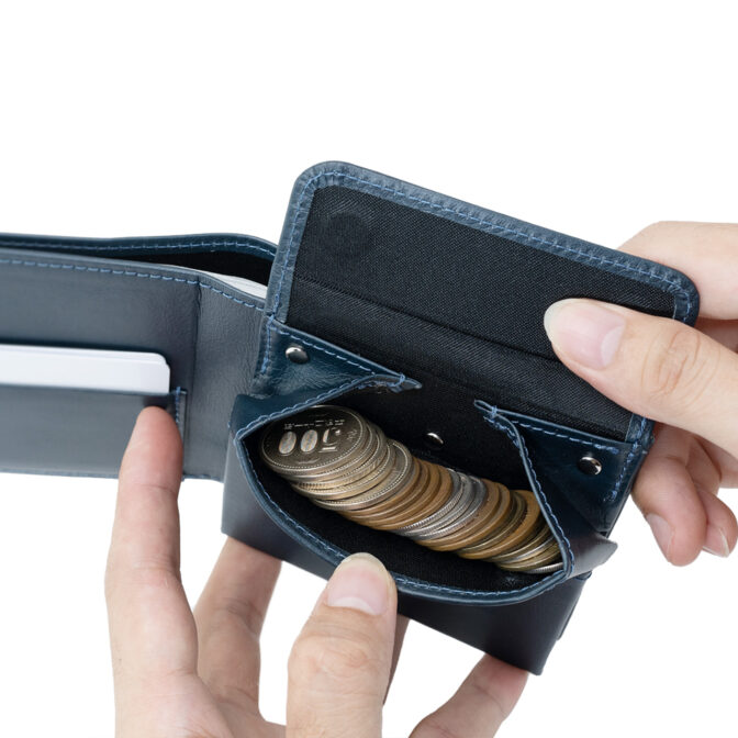 カードと硬貨の位置を工夫することで厚みをキープさせつつ、収納もしっかりとできます。