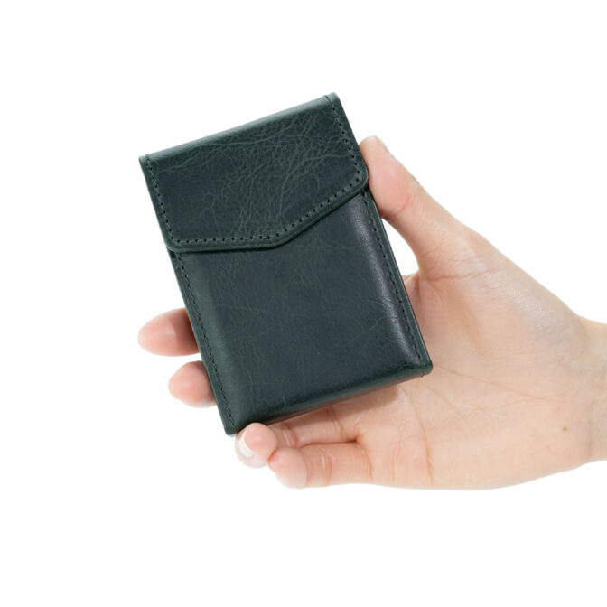 大きく開く形状でも、閉じた時には通常の名刺入れと変わらないコンパクトサイズ感。