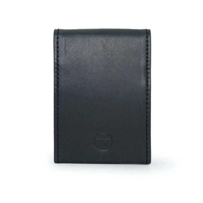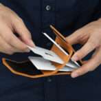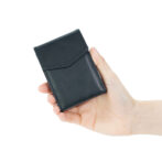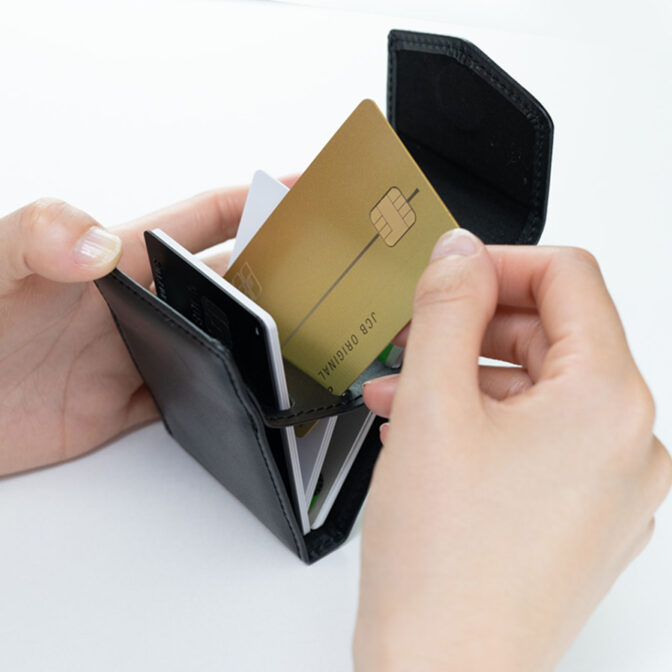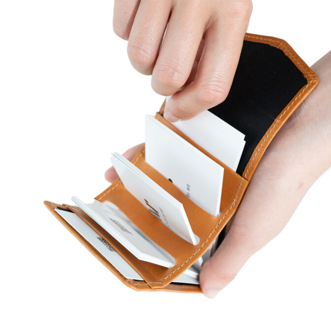 大きく開く形状でも、閉じた時には通常の名刺入れと変わらないコンパクトサイズ感。