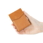 大きく開く形状でも、閉じた時には通常の名刺入れと変わらないコンパクトサイズ感。