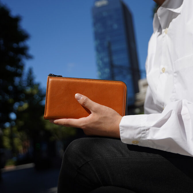 ポケットやバッグへ革の色がついてしまった…買ったばかりなのにすぐ傷や線がついてしまった…そんな方々のご相談の声を参考に、色が落ちにくく比較的傷がつきにくいウレタンコーティング加工を施してある本革を採用しました。