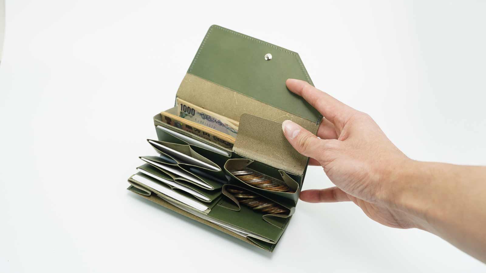 財布を開くと、中身を一目で見渡せる設計になっています。